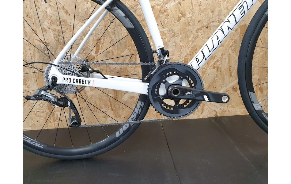 SRAM Force 22 speed Hydraulic groupset provides great value at a low weight utilising carbon crank arms and brake levers, while a wide range 11-32 cassette offers enough options for all gradients. Powerful hydraulic disc brakes supply a controllable bite and stopping power in all conditions.